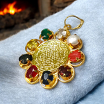 The Navratna Locket with Shri Yantra Pendant is a sacred spiritual accessory that combines the power of Nine Gemstones (Navratna) with the divine energy of the Shri Yantra. The Navratna, representing the nine planets, offers balance, harmony, and protection, while the Shri Yantra is revered for its ability to attract prosperity, remove obstacles, and protect the wearer from negative influences. This pendant serves as a powerful tool for spiritual growth, prosperity, and blessings. Ideal for anyone seeking a balanced life filled with protection, positive energy, and divine blessings.