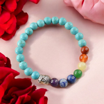 Design: Handcrafted with seven vibrant gemstones representing each chakra, complemented by natural Turquoise (Firoza) for additional healing, protection, and balance.